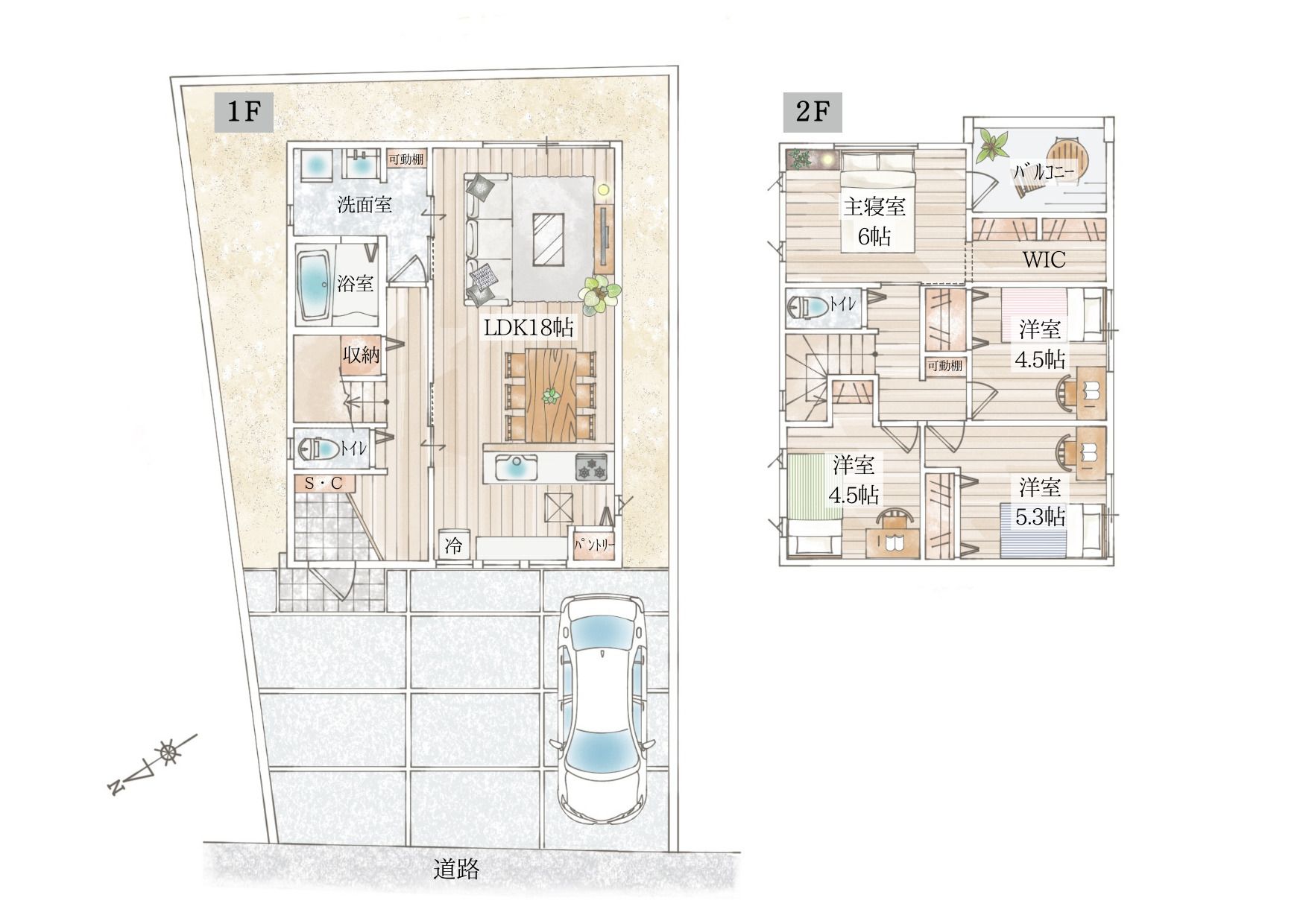 | 間取り | 4LDK | 間取り内訳 | LDK18畳 洋6畳 洋5.3畳 洋4.5畳 洋4.5畳 |